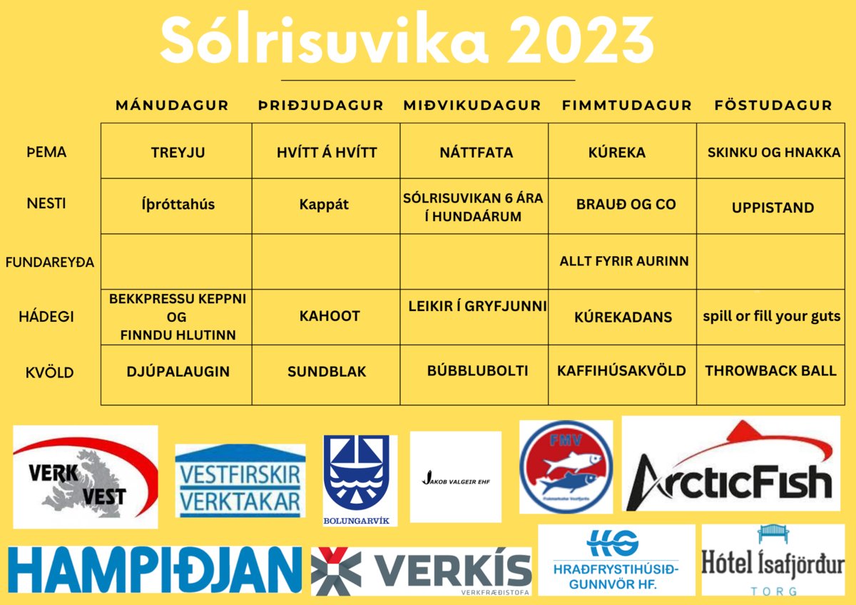 Þá verður óhefðbundið skólastarf og boðið verður upp á þrjár smiðjur hvorn daginn sem kennarar og starfsfólk skólans hafa umsjón með.