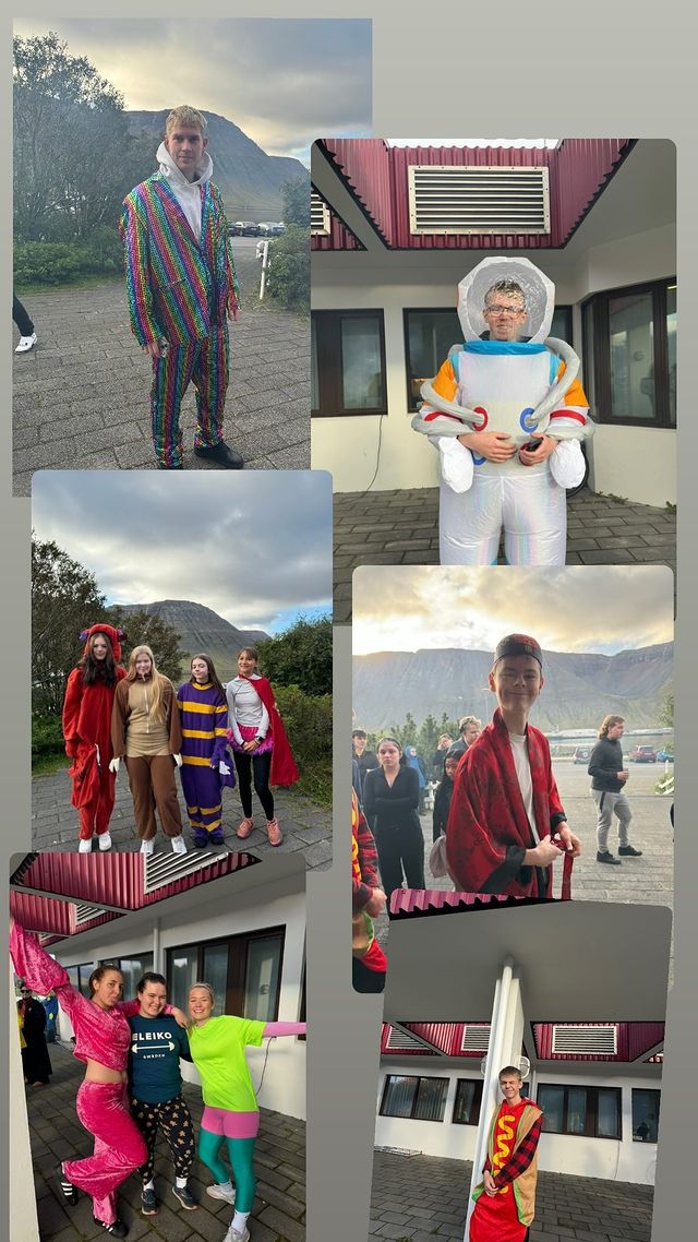 Nemendafélag MÍ stóð fyrir íþrótta- og leikjadegi í dag þar sem ýmislegt skemmtilegt var brallað í stað þess að mæta í hefðbundnar kennslustundir. Dagurinn byrjaði á furðufataskemmtiskokki í blíðuveðri þar sem meðal hlaupara voru ýmsar undarlega klæddar verur eins og meðfylgjandi myndir sýna. Fleira skemmtilegt var boðið upp á eins og bandí, boccia, skák, snúsnú, spil, karíókí og borðtennis. Var ekki annað að sjá en að nemendur og starfsfólk skemmtu sér vel.