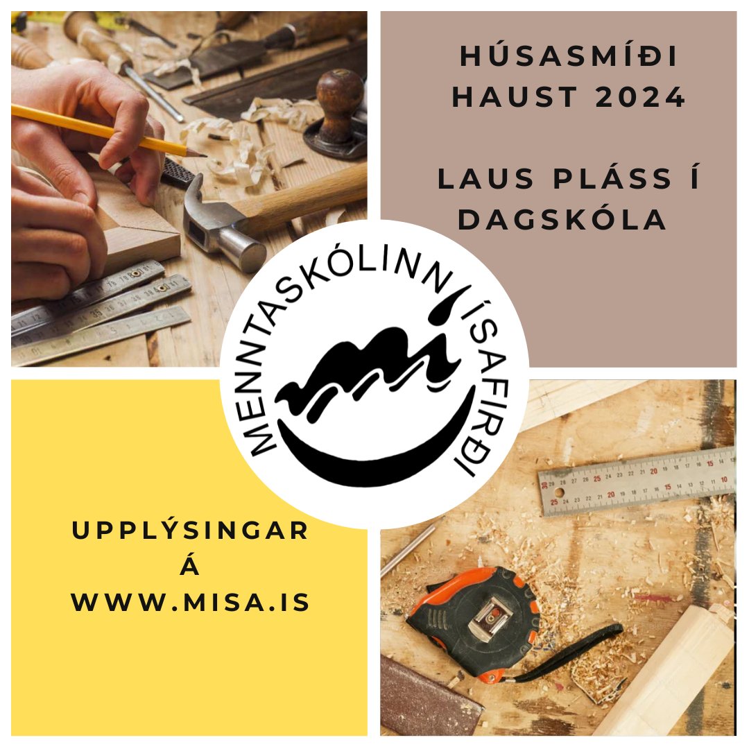 Menntaskólinn á Ísafirði auglýsir laus pláss í húsasmíðanám í dagskóla haustið 2024. Upplýsingar um námsbrautina má finna á heimasíðu skólans, https://misa.is/namid/husasmidi/.