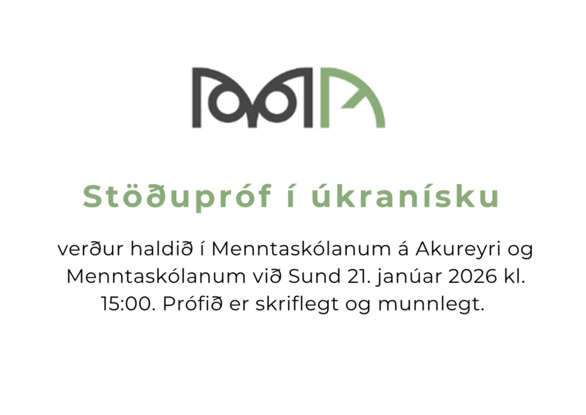 Stöðupróf í úkranísku verður haldið í Menntaskólanum á Akureyri og Menntaskólanum við Sund 21. janúar 2026 kl. 15:00. Prófið er skriflegt og munnlegt.