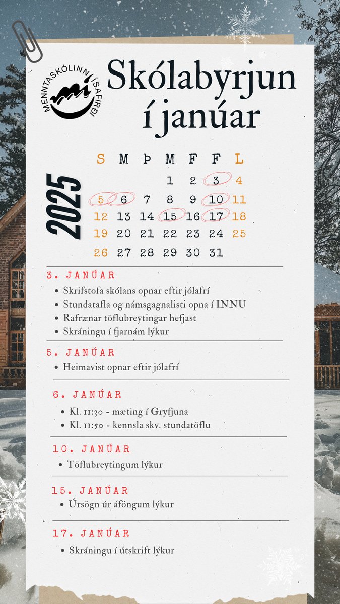 Hér má finna helstu upplýsingar um upphaf skólastarfs á vorönn 2025: