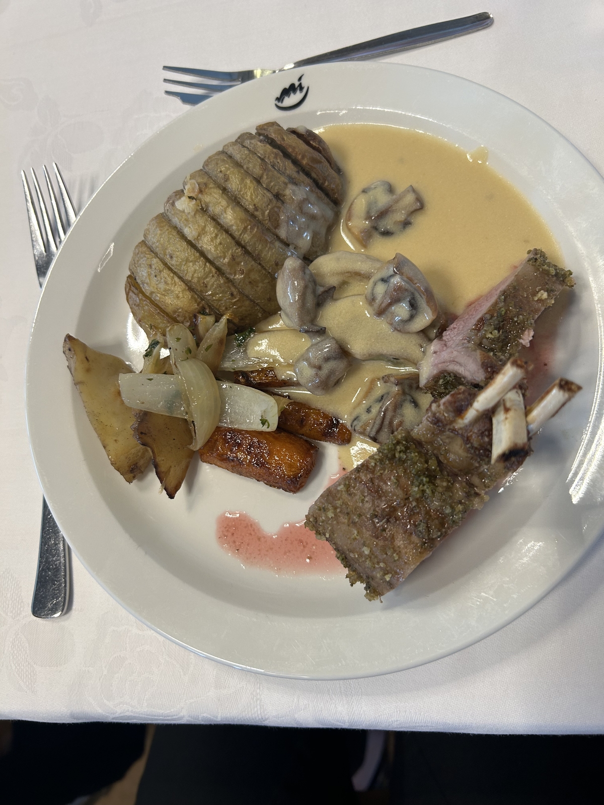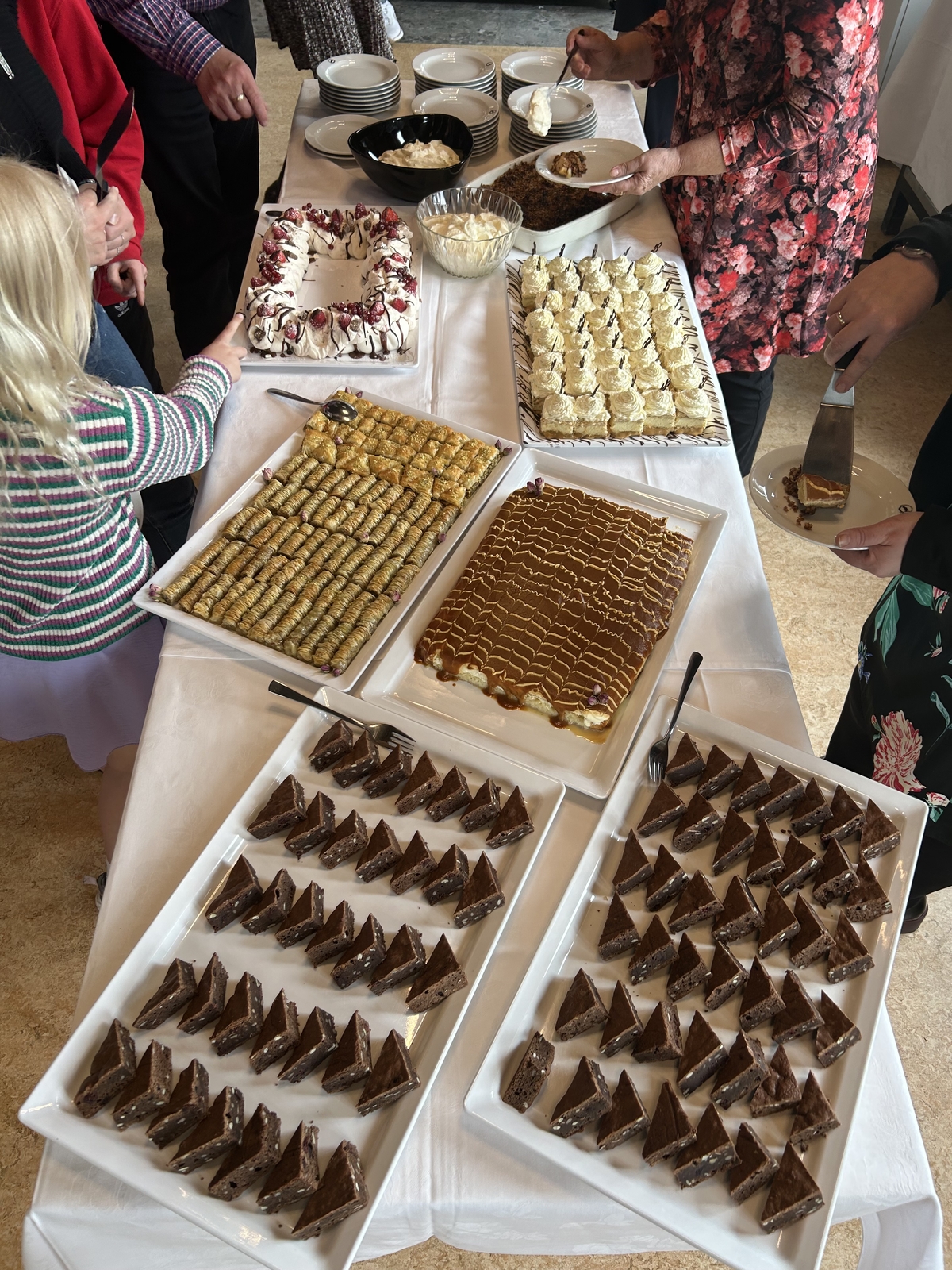Veislan var hluti af námi nemenda og buðu þeir upp á þríréttaða veislu sem samanstóð af glæsilegum forréttum, lambi og meðlæti í aðalrétt og stórglæsilegu eftirréttahlaðborði.